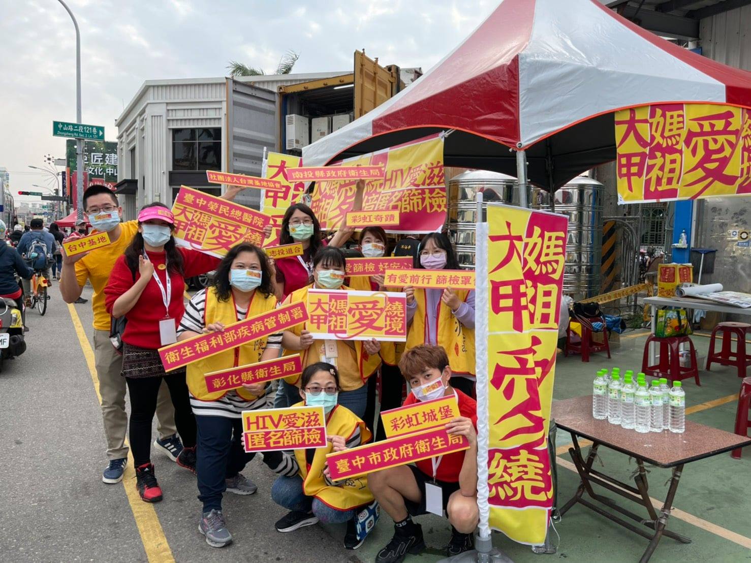 世界三大宗教盛事之一的大甲媽祖遶境,由衛生福利部疾病管制署中區管制中心、台中市政府衛生局、彰化縣衛生局、南投縣政府衛生局、台中榮民總醫院、社團法人台灣基地協會共同辦理了「『愛』 遶境」活動,現場提供免費愛滋匿名快速篩檢,只需要15分鐘即可提供快篩結果。