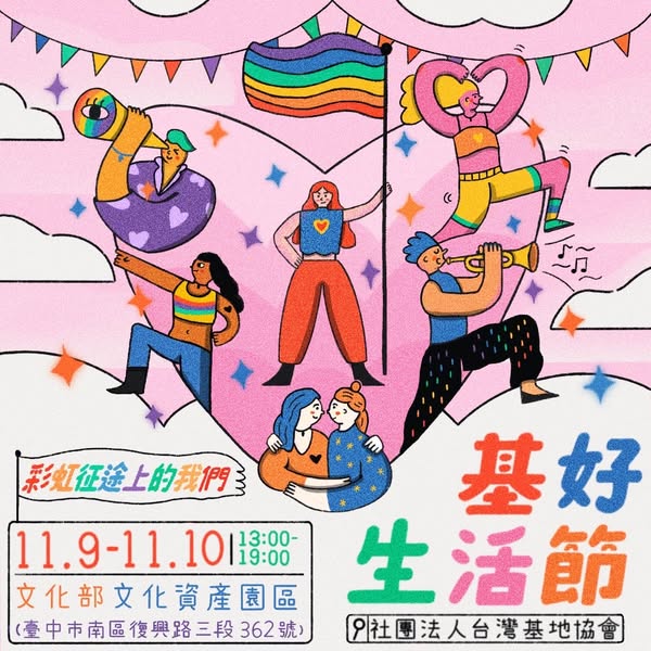 也許我們是倡議者、表演者、歌唱者,亦可能是學生、家長、老師,更或者是一位在日常生活中努力撐著的人。看似巨大差異的我們,其實有一個共通點:每個人都在不同位置、用著不同的方式,成為性別平權征戰路上的伙伴。當我們感覺到疲憊時,請別忘記彼此!今年第三屆基好生活節「彩虹征途上的我們」,基地將透過各個活動和大家共同體驗、感受及回憶每位彩虹戰友的力量,希望一起把彩虹灑滿台灣中部。