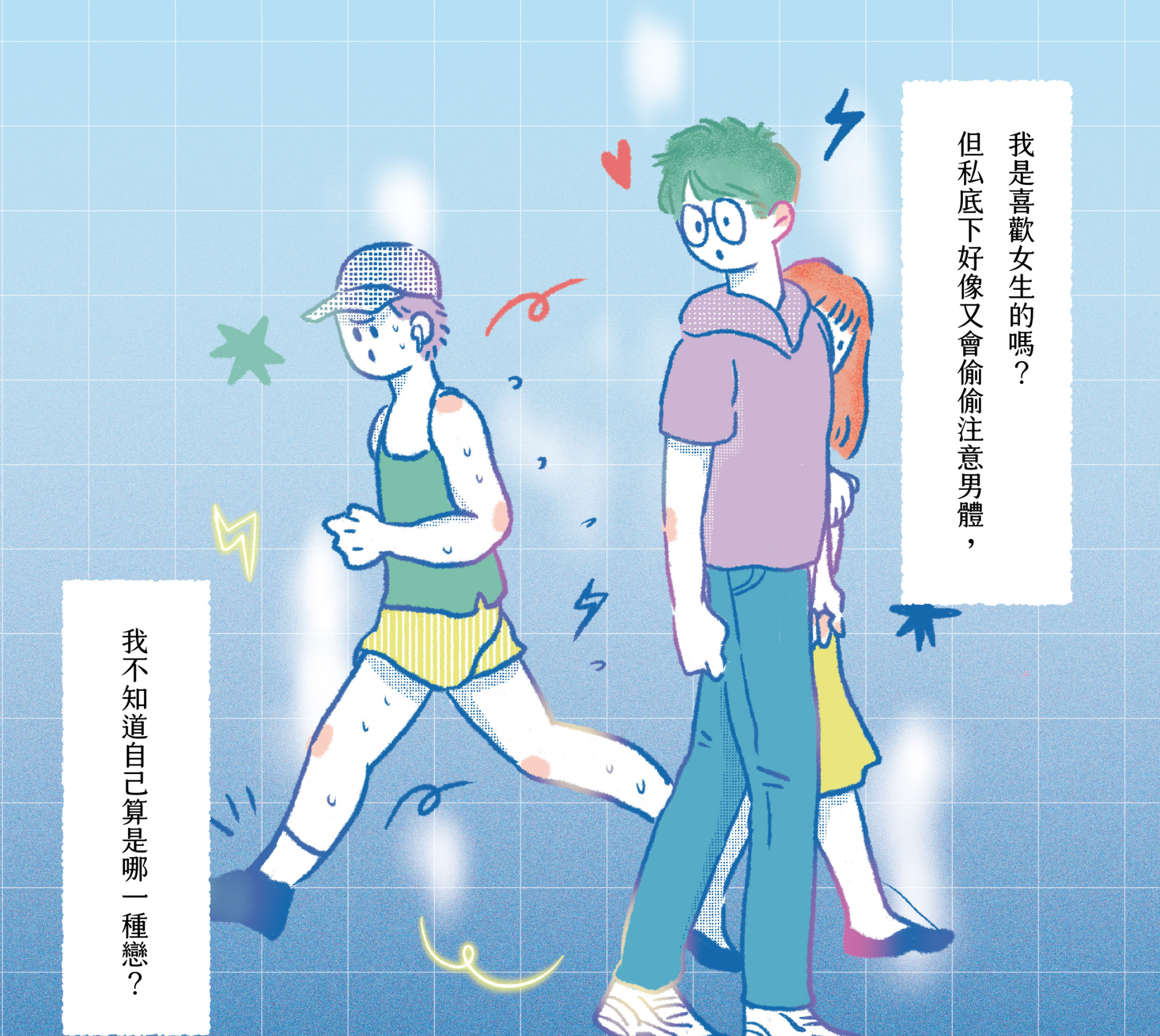 「我是喜歡女生的嗎?但私底下好像又會偷偷注意男體,我不知道自己算是哪一種戀?」