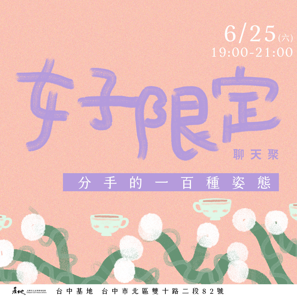 如果妳有分手或被分手的故事,不管是悲傷的、難過的、荒謬的、和平的,歡迎來到女子日聊天會一起聊聊,讓我們來一起陪伴、面對、學習在那段關係中的我們。